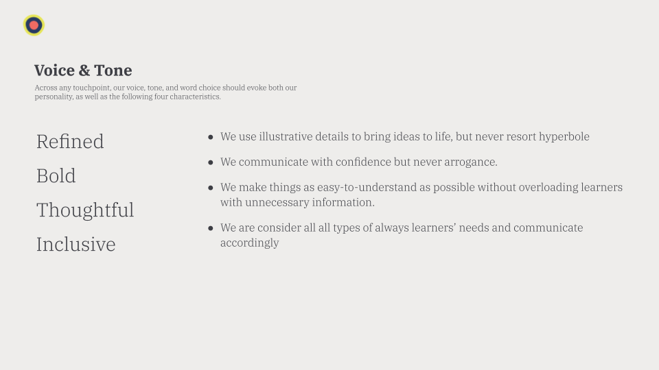Building a scalable voice + tone system for a growing education platform